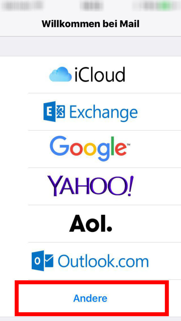 Tippen Sie nacheinander auf „Account hinzufügen“, „Andere“ und „Mail-Account hinzufügen“.