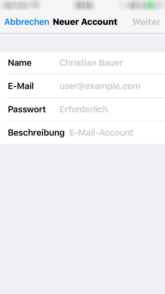Tippen Sie auf „Weiter“. Mail versucht daraufhin, die E-Mail-Einstellungen zu ermitteln und die Accounteinrichtung abzuschließen. Wenn Mail die E-Mail-Einstellungen gefunden hat, tippen Sie auf „Fertig“, um die Accounteinrichtung abzuschließen.