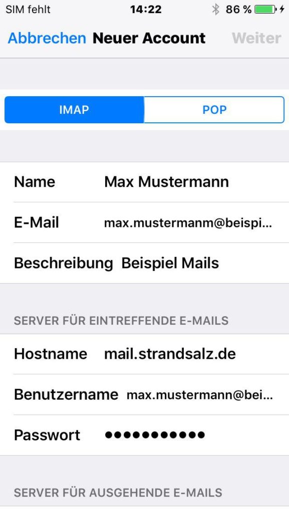 Strandsalz E-Mail-Account einrichten
